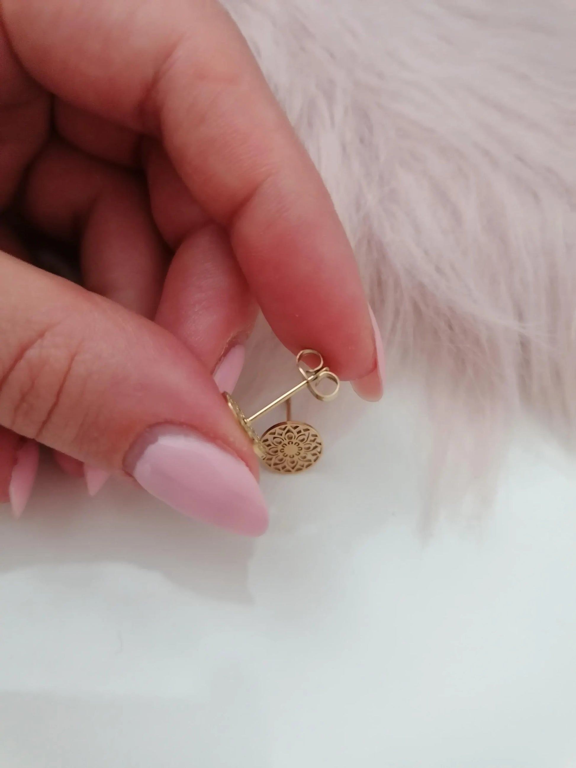 Gold Mandala Ohrstecker – Edelstahl, 9 mm | Boho Schmuck