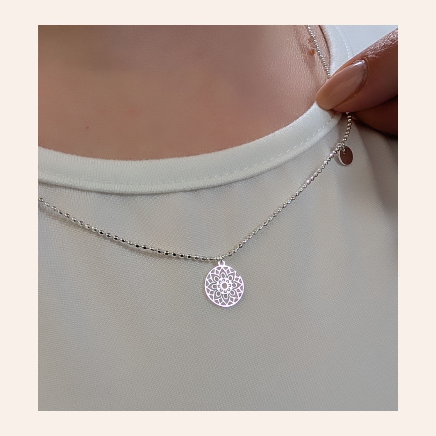 Halskette mit Mandala des Glücks – Silberfarben
