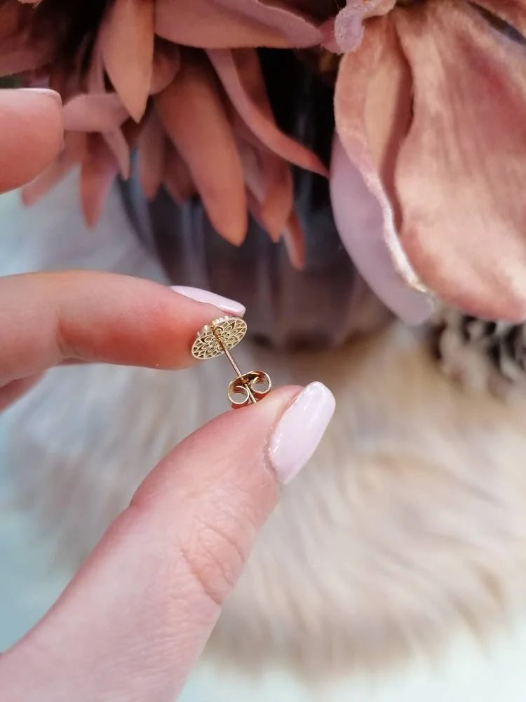 Trage Stil, Bedeutung und Eleganz in einem – mit diesen zarten Mandala-Ohrsteckern in Roségold.