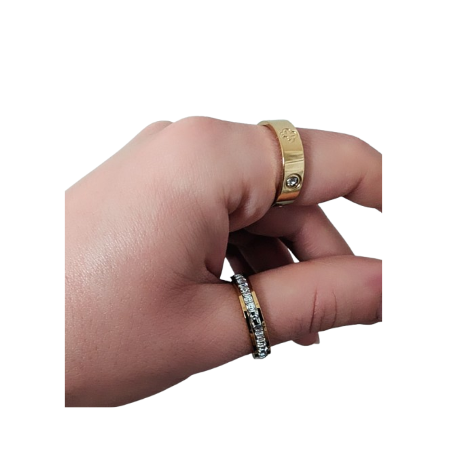 Schmuckset „Golden Luxe“ – 2 Ringe & 2 Armreifen | Edelstahl Gold | Mit Kristallen