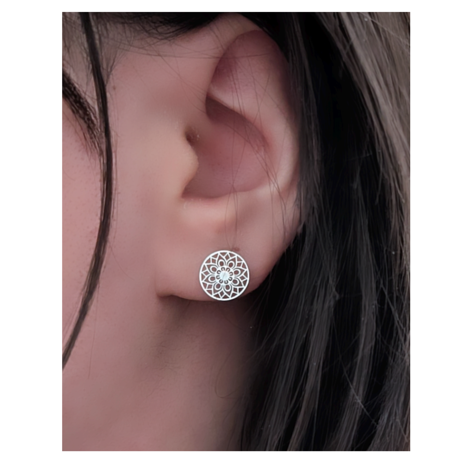 Mandala Ohrstecker aus Edelstahl – Silberfarben, 9 mm
