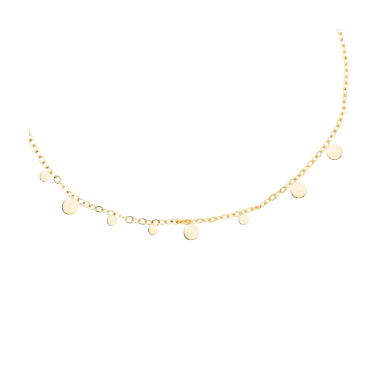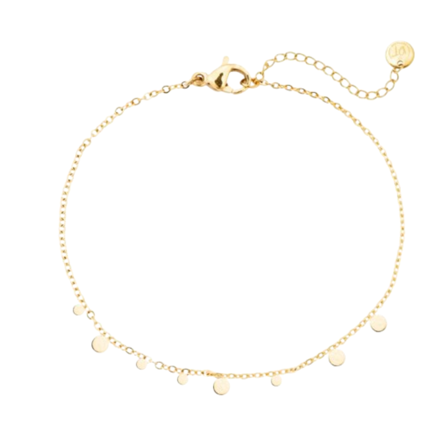 Diese minimalistische Plättchen-Armkette vereint zarte Eleganz mit zeitlosem Stil. Acht filigrane Dots (ca. 2 mm & 3 mm) aus goldfarbenem Edelstahl machen dieses Schmuckstück zu einem stilvollen Begleiter – ob für den Boho-Look am Strand oder elegant im Alltag.
